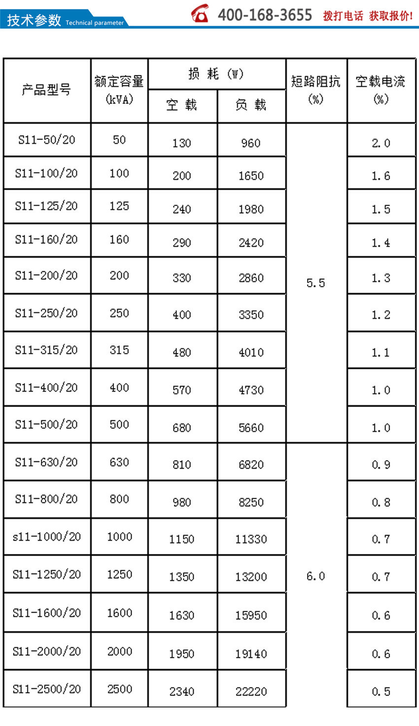 S11系列產(chǎn)品在S9系列的基礎(chǔ)上,空載損耗平均降低了30%;空載電流比S9下降70-85%;平均溫升降低10K,產(chǎn)品使用壽命增加一倍多,即使在超負(fù)載20%的條件下仍可長期運行;產(chǎn)品運行噪音平均降低2-4分貝。